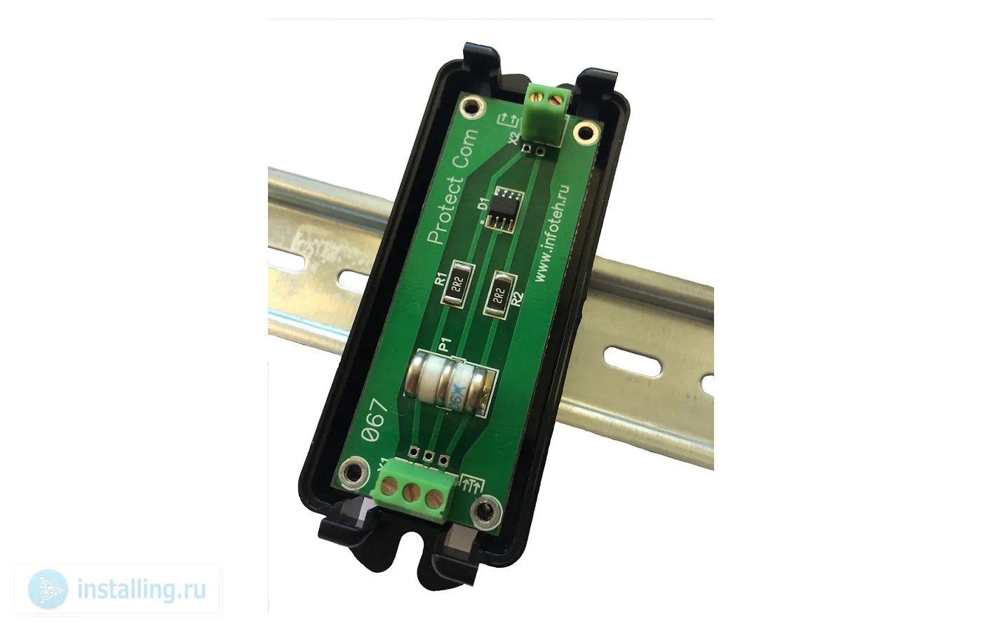 Устройство грозозащиты цепей передачи AHD/CVI/TVI/CVBS видеосигналов по витой паре при ударах молнии. Двухуровневая защита по напряжению от 5,6В с Рmax.= 400 Вт, время срабатывания 5 нс / от 90В Imax=10КА, время срабатывания – 8/20 мкс; Дифференциальная и синфазная защита; Полоса пропускания до 100МГц; Вход, выход – под клеммы; 110х36х26 мм. ; –40°...+50°C.; Адаптировано для установку на DIN - рейку с использованием монтажной планки AVT-DIN01