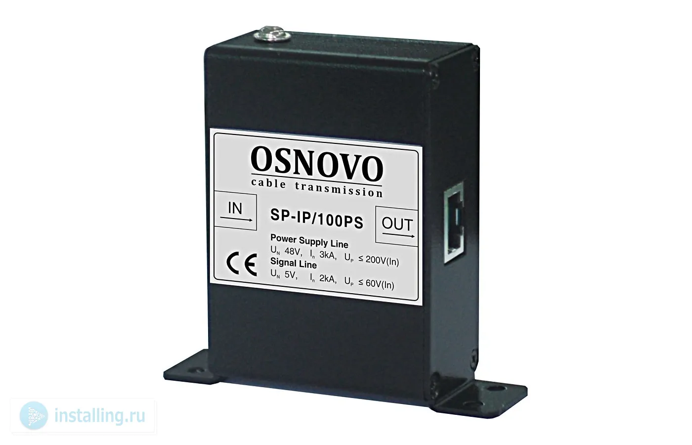 Устройство грозозащиты для локальной вычислительной сети скорость до 100Мбит/с с защитой линий PoE af/at, метод B, контакты 4/5, 7/8, двухступенчатая защита. 1 вход RJ45-мама, 1 выход RJ45-мама; Монтаж на стену; -40…+80°С; 82x29x79 мм.
