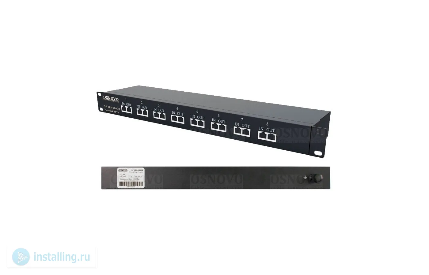 Устройство грозозащиты для Ethernet сети 1000 Мбит/с; 8 портовконт. 1/2,3/6,4/5,7/8. Двухступенчатая защита. Максимальное длительное рабочее напряжение Uc 6В. Номинальный ток разряда 8/20 мкс, In 2,5kA. Максимальный ток разряда 8/20 мкс, Itotal 20kA. Время отклика не более 10нc; Монтаж в 19 стойку 1U; 487x44,5x102мм. -40…+80°С.