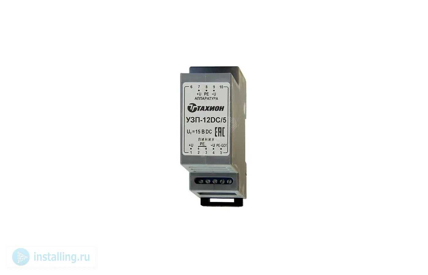 Устройство защиты УЗП-12DC/5 предназначено для защиты цепей вторичных источников питания распределительных сетей аппаратуры промышленной автоматизации, систем сигнализации и др. от импульсных перенапряжений (грозовых, электростатических разрядов и др.).