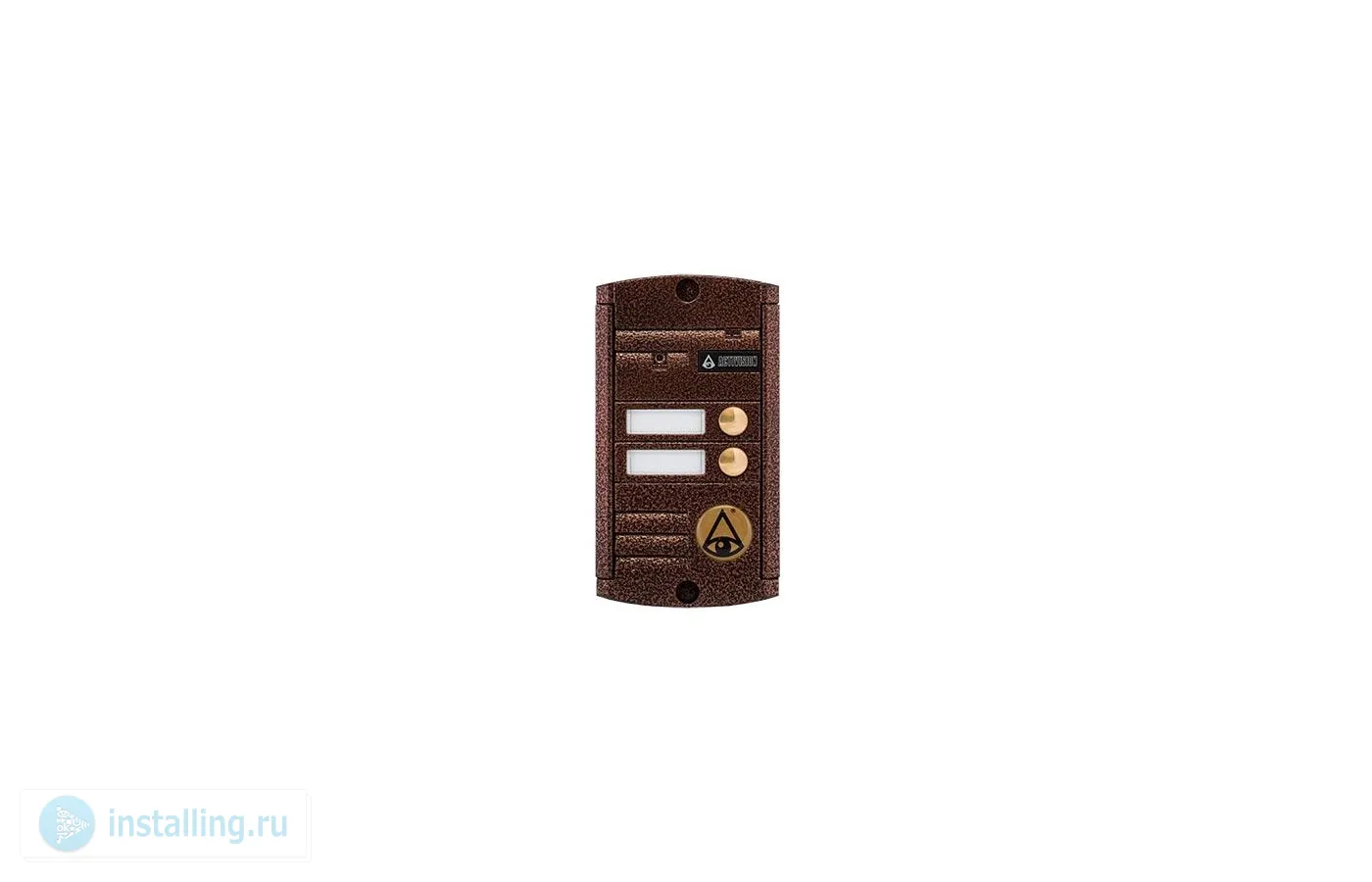 Вызывная видеопанель на 2 абонента, накладная, 4-х проводная, 600 ТВЛ, ИК-подсветка, питание 12 В, -50…+50°C, IP55, 125х70х20 мм, цвет медь