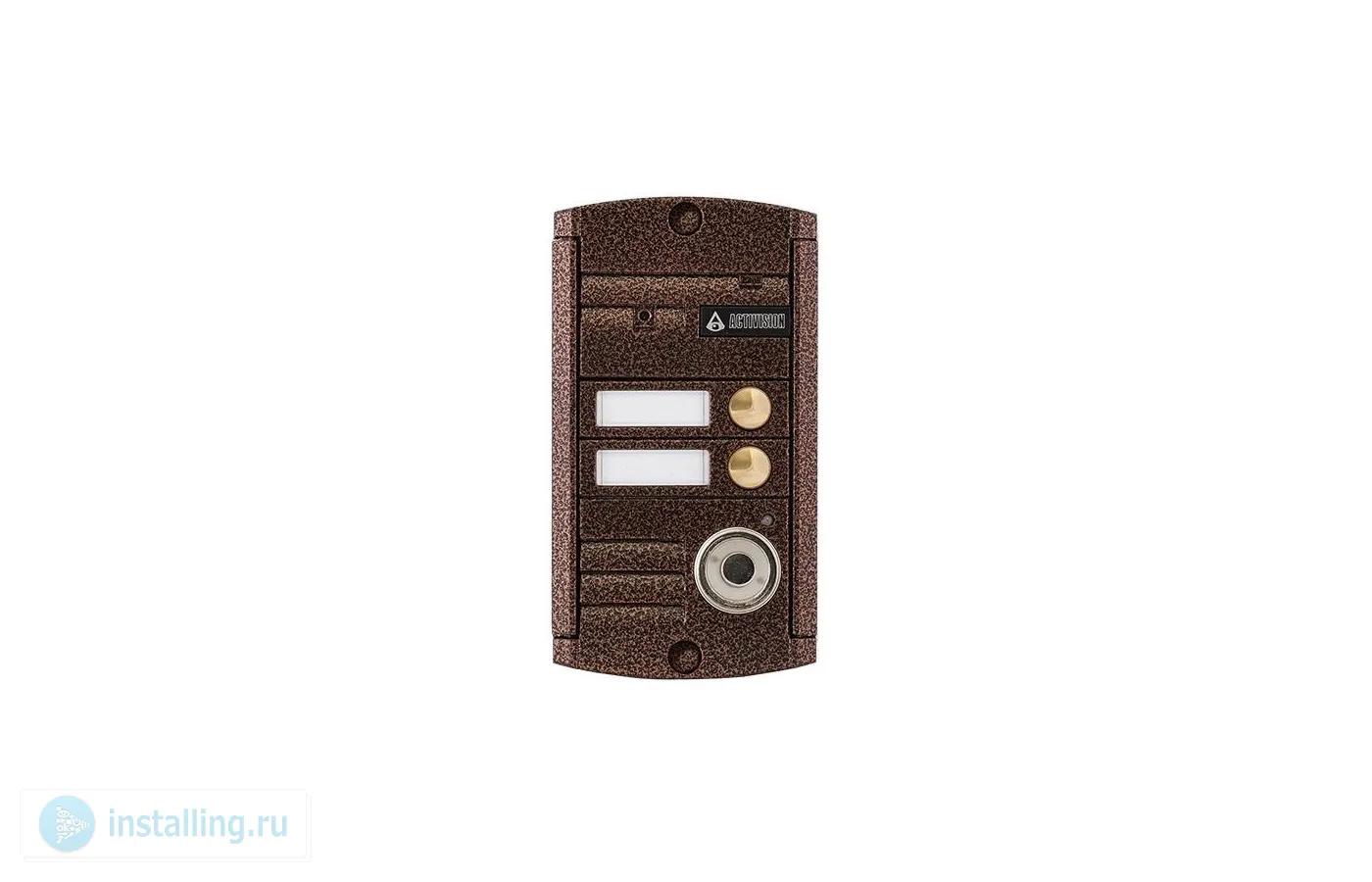 Вызывная видеопанель на 2 абонента со встроенным считывателем Touch Memory, накладная, 4-х проводная, 1000 ТВЛ, ИК-подсветка, память на 1005 ключей, питание 12 В, -50…+50°C, IP55, 125х70х20 мм, цвет медь