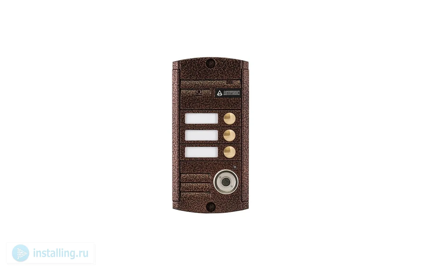 Вызывная видеопанель на 3 абонента со встроенным считывателем Touch Memory, накладная, 4-х проводная, 1000 ТВЛ, ИК-подсветка, память на 1005 ключей, питание 12 В, -50…+50°C, IP55, 140х70х20 мм, цвет медь
