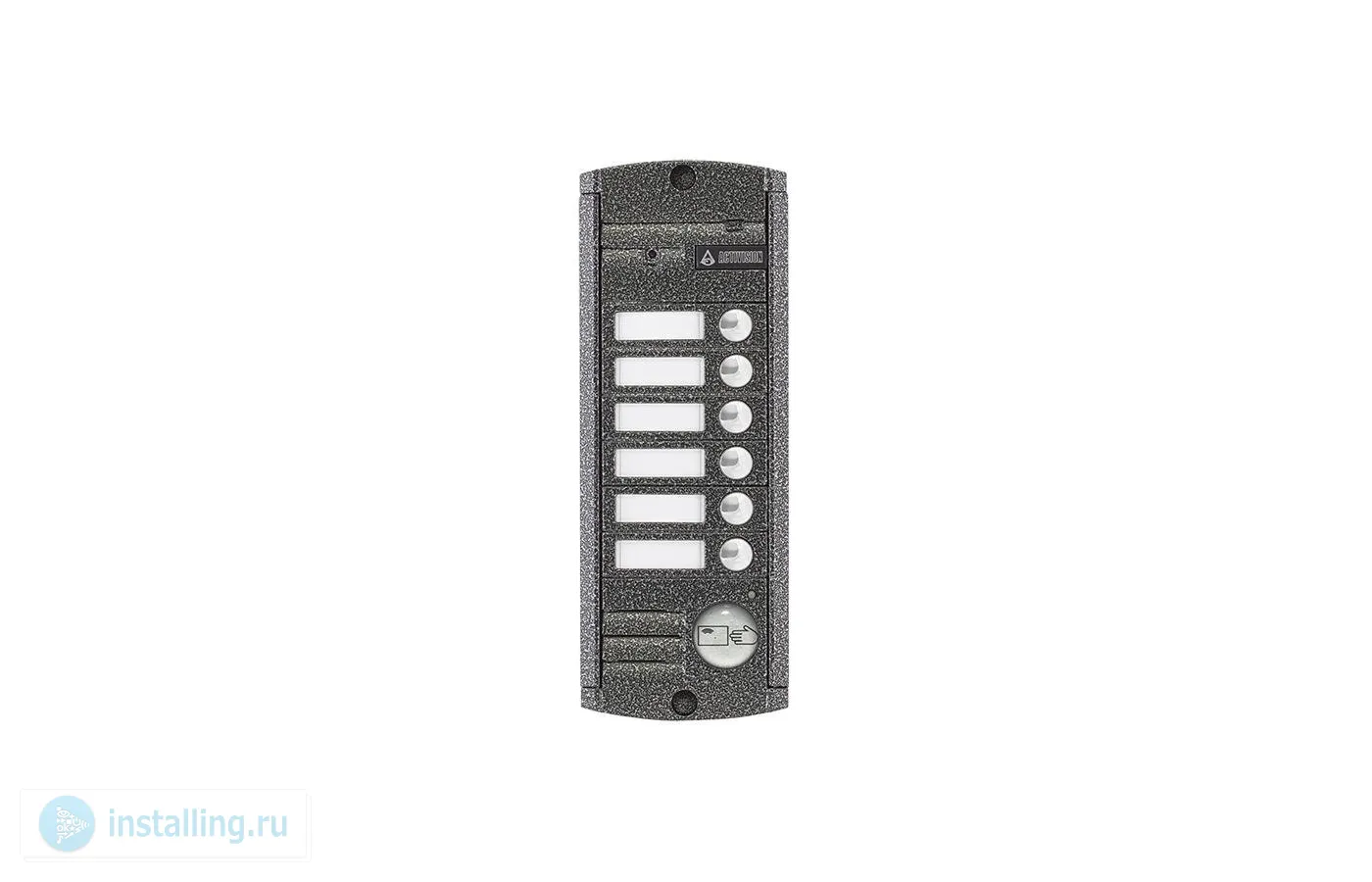 Вызывная видеопанель на 6 абонентов со встроенным Proxy считывателем, накладная, 4-х проводная, 1000 ТВЛ, ИК-подсветка, память на 1005 ключей, питание 12 В, -50…+50°C, IP55, 185х70х20 мм, цвет серебро