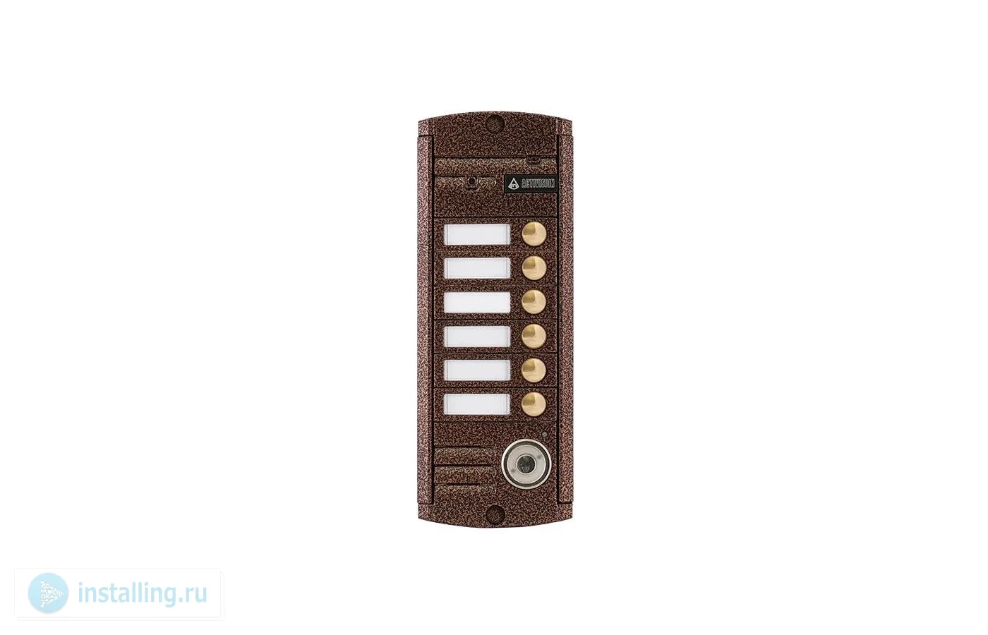 Вызывная видеопанель на 6 абонентов со встроенным считывателем Touch Memory, накладная, 4-х проводная, 1000 ТВЛ, ИК-подсветка, память на 1005 ключей, питание 12 В, -50…+50°C, IP55, 185х70х20 мм, цвет медь