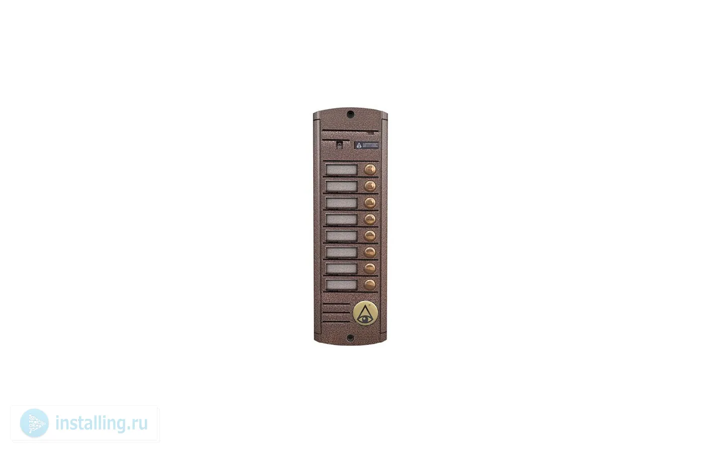 Вызывная видеопанель на 8 абонентов, накладная, 4-х проводная, 600 ТВЛ, ИК-подсветка, питание 12 В, -50…+50°C, IP55, 215х70х20 мм, цвет медь