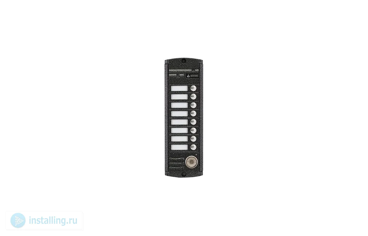 Вызывная видеопанель на 8 абонентов со встроенным считывателем Touch Memory, накладная, 4-х проводная, 1000 ТВЛ, ИК-подсветка, память на 1005 ключей, питание 12 В, -50…+50°C, IP55, 215х70х20 мм, цвет серебро