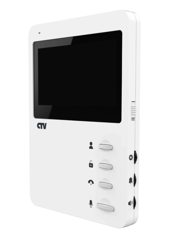 Вызывная панели CTV-D10NG, угол обзора 80°/45° (гор./верт.), подсветка кнопки вызова; Объектив 3.7мм, 12 В DC. Реле замка нормально-открытое, -40°C +60°C, 40х121х24 мм. - Монитор CTV-M1400N, монитор с экраном 4,3", Hands free, 480х272, CVBS (PAL), подключение до 2 вызывных панелей, выключатель питания, разъем HOOK, АС 100-240.Цвет корпуса монитора/панели - белый/серебро, -10...+60°C, 170х120х20 мм.