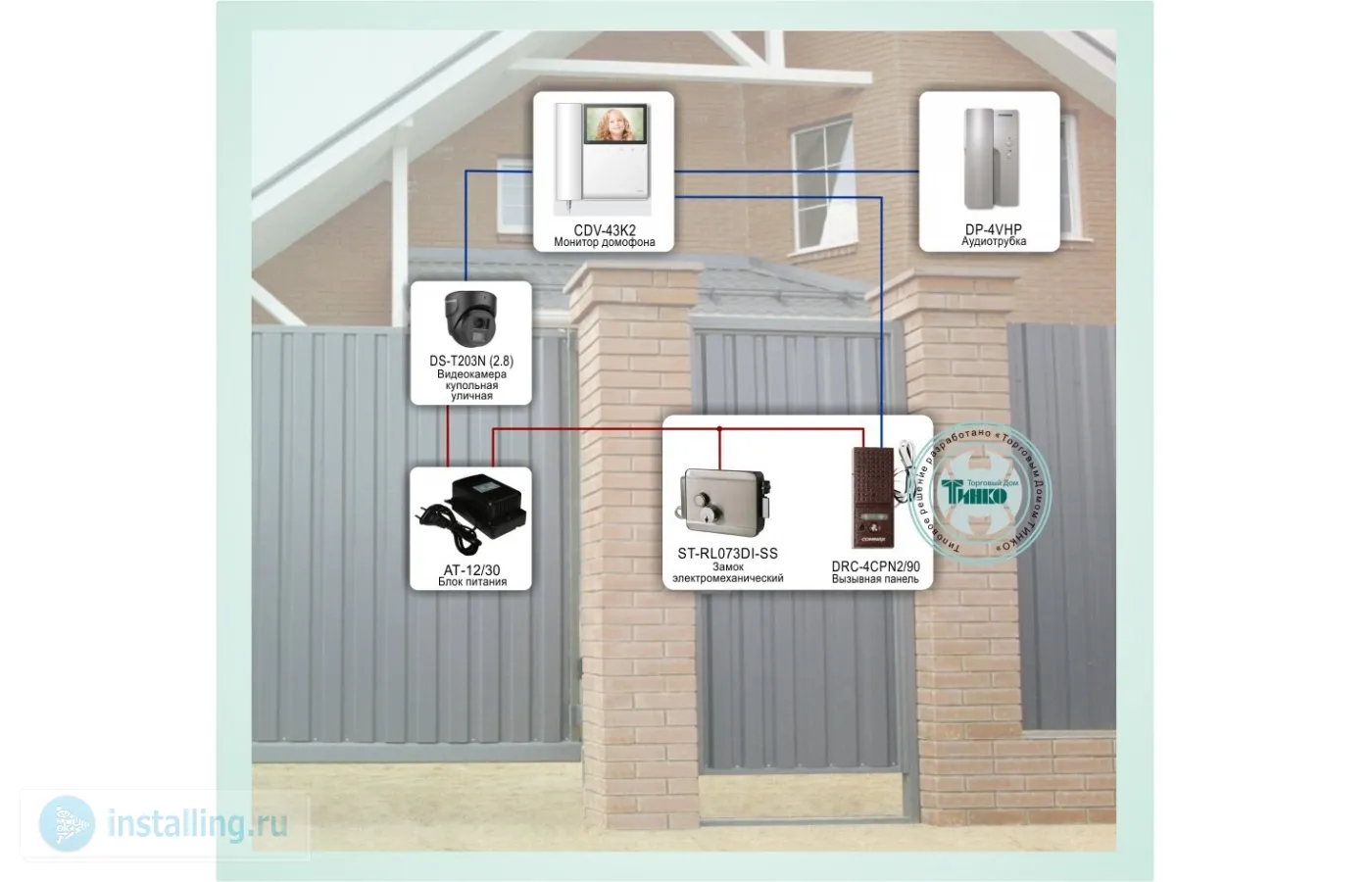 Предлагаемое типовое решение системы ограничения доступа реализовано на базе видеодомофона, состоящего из: видеомонитора KW-E400FC KENWEI, вызывной панели AVC-305 (PAL) Activision и электромеханического замка JL-10P J-LOCK.