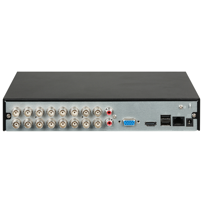 Видеорегистратор HDCVI/CVBS/HDTVI/AHD 16 каналов видео + 1 аудио (Поддержка передачи звука от камеры к регистратору через коаксиальный кабель 16 каналов), Поддержка IP камер 2 IP до 6Мп (с замещением аналоговых камер 18 IP); Linux OS, AI-Coding/H.265+/H.265/H.264+/H.264; Скорость записи CVI, TVI, AHD: Первый канал 1080N -25 к/с; 2-8кн х1080N/720P - 15 к/с; Аналоговый сигнал (PAL) : 8х960H - 25 к/с ; Видеоаналитика: 8кн интеллектуальный детектор движения SMD Plus, интеллектуальный поиск; Видеовыходы: HDMI, VGA; 2 USB2.0; 10Base-T/100Base-TX Ethernet порт; Сетевые протоколы HTTP, HTTPS, TCP/IP, IPv4/IPv6, UPnP, RTSP, UDP, SMTP, NTP, DHCP, DNS, IP-фильтр, PPPoE, DDNS, FTP, сервер сигнализации, P2P, поиск IP (поддерживает Dahua IP камера, видеорегистратор, NVS и т. д.), Поддержка: iOS, Android ; 1х HDD SATA до 16Тб; DC12 В/2000 мА (адаптер питания в комплекте); 260.0х229.6х47.6мм; -10°...+45°C