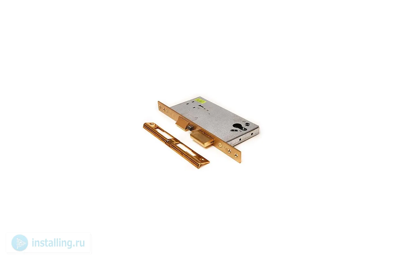 Врезной, универсальный, электроуправляемые ригель и защелка, расстояние от центра цилиндра до лицевой планки 40 мм, матовая латунь, в комплекте ответная планка, крепеж; габаритные размеры врезной части 183х69х18 мм, лицевая планка 264х22х3 мм