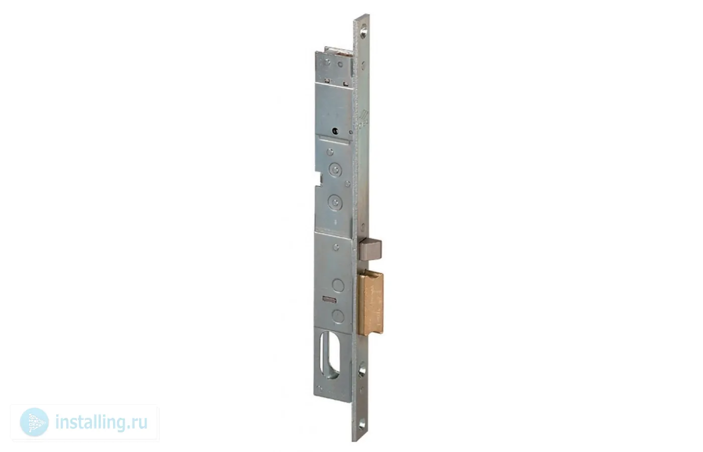 Для алюминиевых и пластиковых профильных дверей. Электроуправляемая защелка, овальный цилиндр, расстояние от торца двери до середины цилиндра 18 мм, напряжение 12 В, не реверсивный.