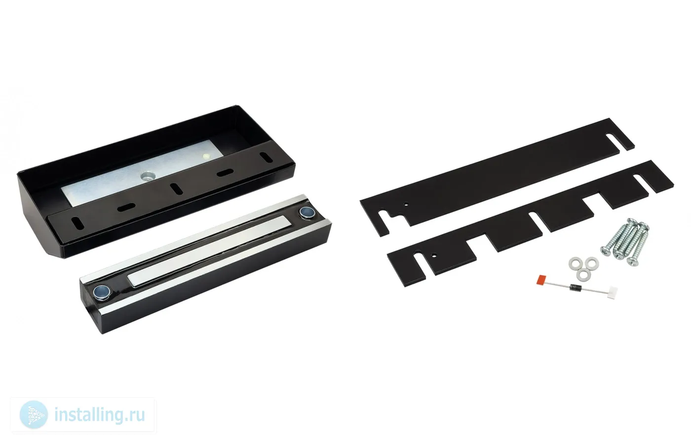 350кг; DC12В/24В; 0,58А/0,29А. -60...+50С. IP67. Размер корпуса замка:225х42,5х27мм. Антикоррозийное покрытие,цвет: чёрный.