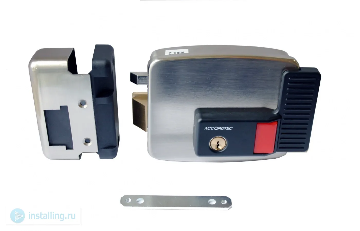 НЗ; 12В DC; 3,5 А (импульс до 1 сек.); Открывается при подаче питания (нормально-закрытый замок), время управления не более, сек 1; Функция: выход по кнопке, блокировка кнопки открытия (выход по сигналу от СКУД, фиксация замка в открытом положении (свободный проход), вход по ключу из комплекта. Материал корпуса никелированная сталь; -30 +50°C, 148х107х35 мм; 1,3 кг. Способ установки: дверь открывается на внешнюю правую сторону