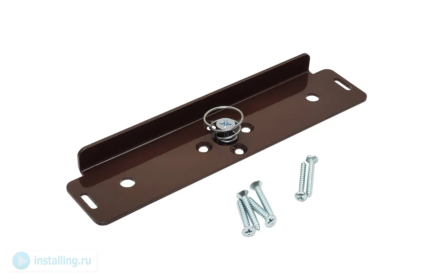 Монтажный комплект для установки якоря на дверь с помощью переходной пластины, с возможностью регулировки. Для замков: ALM-350FB, ALM-300, ALM-400. Цвет коричневый.