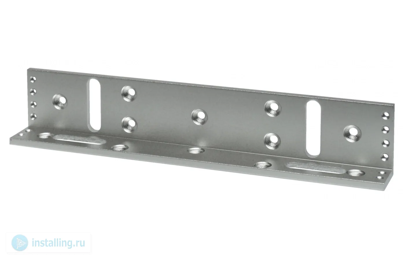 Кронштейн L типа выполнен из алюминия и предназначен для крепления электромагнитных замков на двери, открывающиеся наружу, когда ширина дверной коробки не допускает непосредственный монтаж замка.