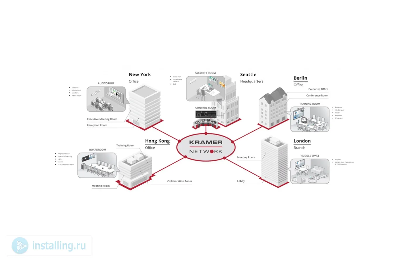 Системы Kramer Network с базовой версии KRNT-Base до версии KRNT-VM30 с 30-ю подключаемыми устройствами.