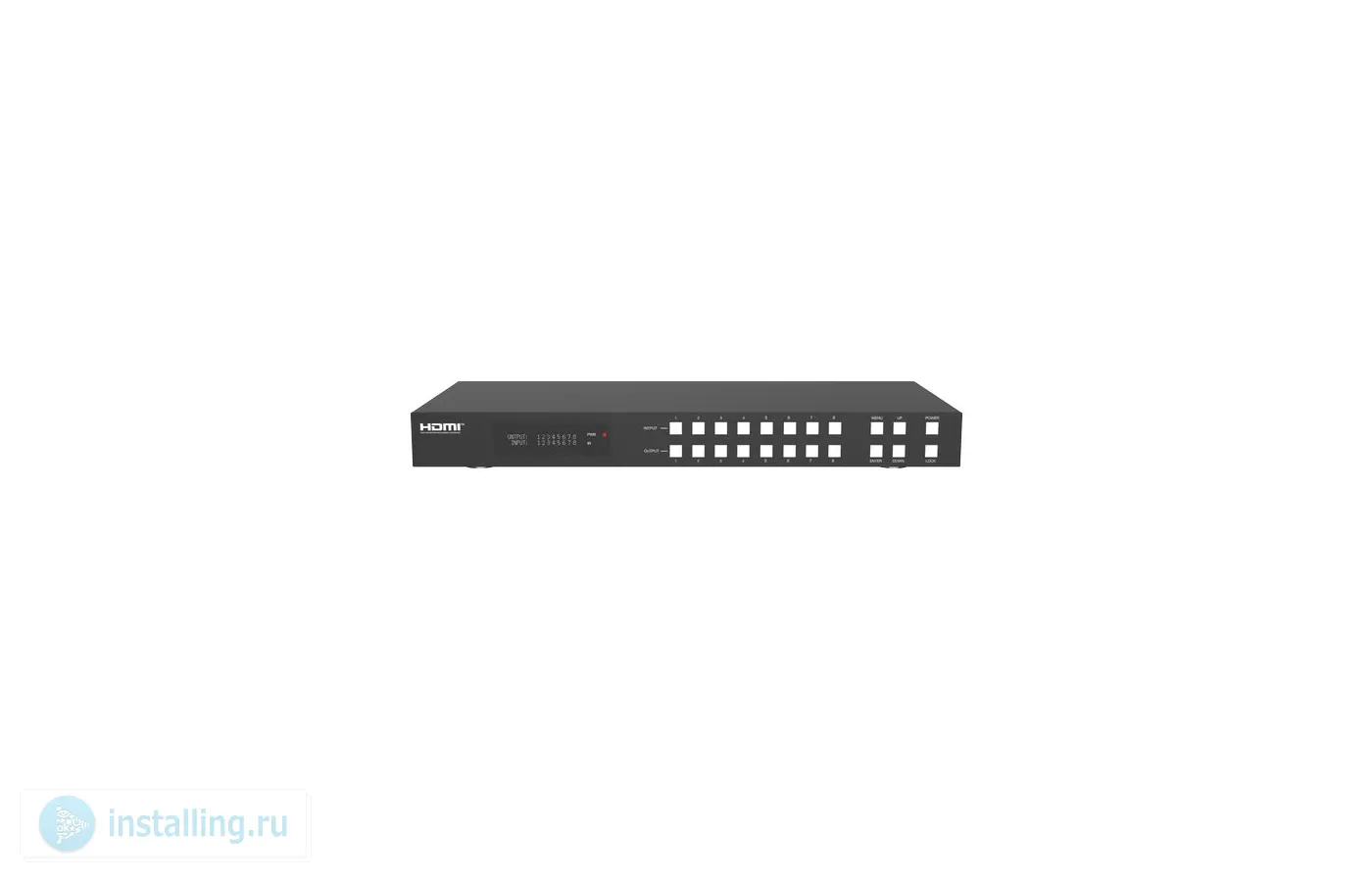 8х8, 4K 60Гц 4:4:4 (18Гб/с), HDMI 2.0, Мультивьювер, режим Видеостены, де-эмбеддер, HDCP 2.2, RS232, IR, TCP/IP (GUI)