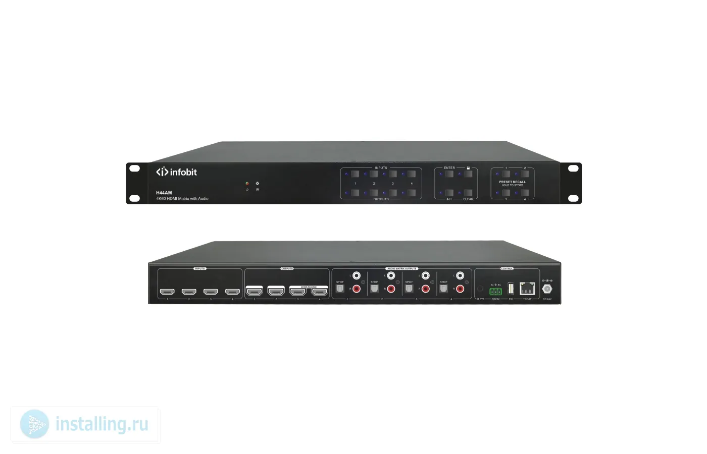 HDMI 4K60, 4х4, 3840x2160/60 Гц; 4 цифровых аудиовыхода SPDIF, 4 аудиовыхода Toslink с поддержкой Audio Matrix/Downscaling/AOC