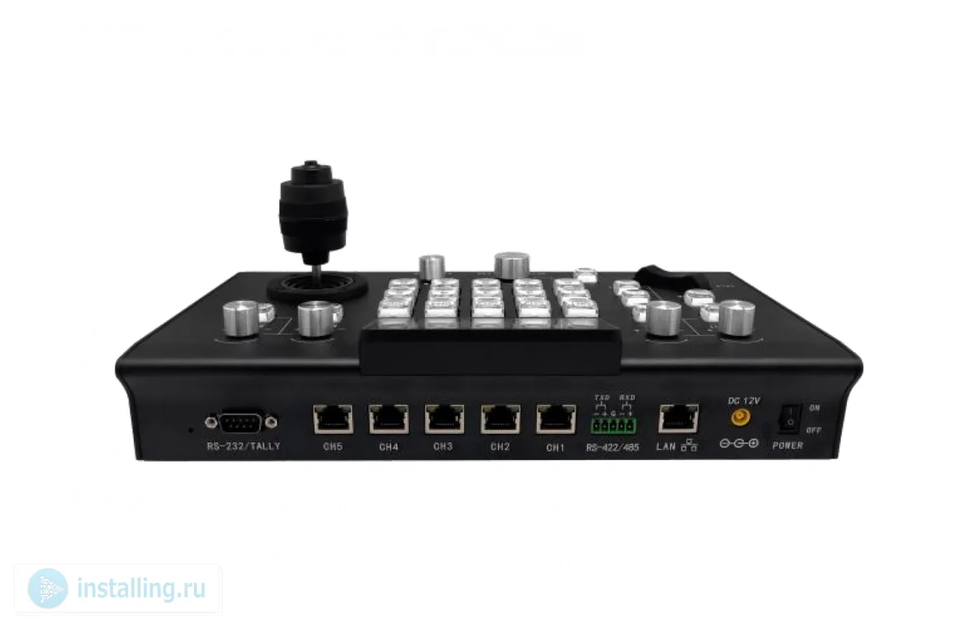 Интерфейсы RS232/485: RJ45 x5(CH1-CH5) RS-232: DB9 x1, RS422: 5pin x1, LAN: RJ45 x1. 3-дюймовый цветной ЖК-дисплей. Управление Кнопки управления (соответствующие PTZ, zoom). Энергопотребление, Вт 2Вт. Вес 1.5 кг. Размеры (Ш x В x Г) 296 x 180 x 115 мм.