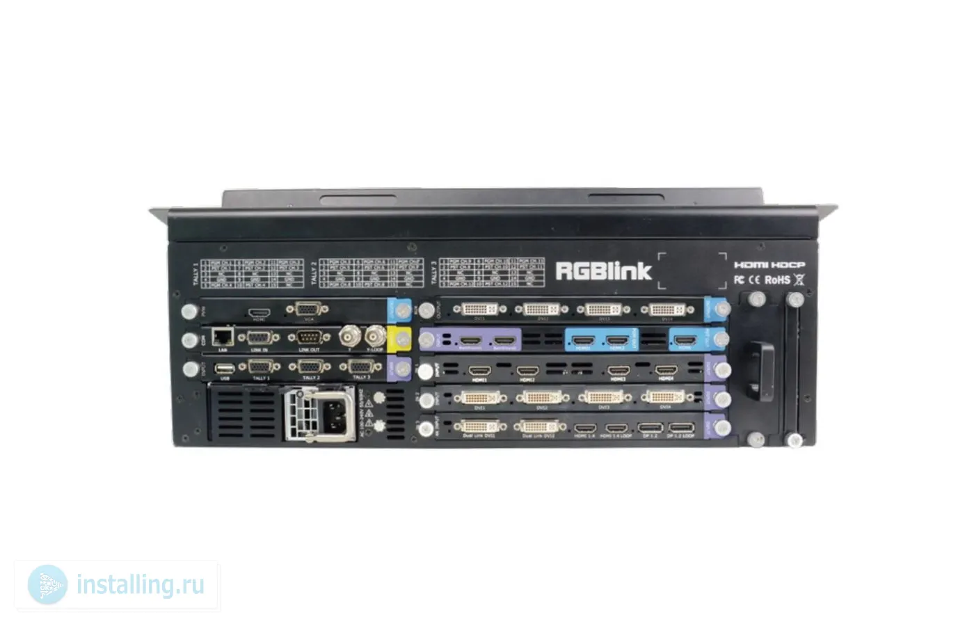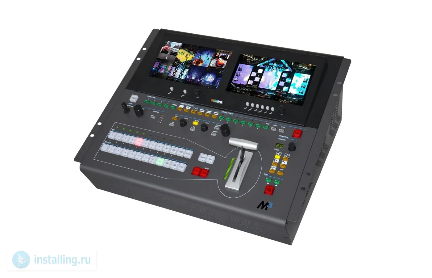 RGBLink M3 – модульный видеомикшер и презентационный процессор с двумя экранами, T-BAR, кнопками TAKE, CUT, джойстиком. Большое число органов управления позволяет оператору быстро выполнять необходимые действия. Является самым мощным по функционалу и возможностям среди видеомикшеров RGBlink. Для предпросмотра входов, PGM и PST не требуется подключать экрана – всё это можно вывести на два встроенных экрана.