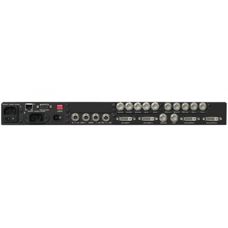 C2-2375A - универсальный видеомасштабатор, построенный на основе эксклюзивной технологии CORIO2 компании TV One. Он обеспечивает высококачественное преобразование между видеосигналами, сигналами компьютерной графики и HDTV с понижением и повышением разрешения. Прибор работает в телевизионных системах NTSC, PAL и SECAM. На входе и на выходе прибора поддерживаются сигналы следующих форматов: 3G-SDI, HD-SDI, SD-HDI, DVI, композитный, S-video, компонентный YUV, компонентный YPbPr и RGB. Уникальная функция AutoSet, автоматически устанавливающая размер и положение изображения для точного соответствия экрану, делает настройку видеосистемы исключительно простой. Параметры входных видео сигналов можно регулировать. Все настройки сохраняются в энергонезависимой памяти и не теряются при отключении питания прибора. На выходы RGB/YPbPr сигнал выдается в формате компьютерной видеографики с любым разрешением до 2048x2048 или в любом формате HDTV до 1080p. Поддерживается широкий спектр форматов компьютерных видео сигналов, обеспечивающий совместимость с платформами PC, Mac и рабочими станциями. Всеми функциями можно управлять с помощью кнопок передней панели, через интерфейс RS-232/422/485 или Ethernet. В комплект входит программная панель управления для Windows. Большинство управляющих систем сторонних производителей подключаются к приборам серии C2 напрямую. Для облегчения настройки используется встроенный дисплей. В качестве опции прибор может быть оборудован дублирующим блоком питания с отдельной силовой розеткой. С помощью органов управления перемещением можно выбрать любую часть изображения и увеличить ее до размеров всего экрана максимум в десять раз. Функция уменьшения размера изображения до 10 оригинального размера дает возможность подогнать кадр под практически любой дисплей. Инновационная схема цифрового подавления мерцания и высокая частота дискретизации гарантируют резкость изображений, а обработка всей частотной полосы сигналов цветности обеспечивает достоверность воспроизведения цветов и высокое разрешение. Прибор использует комплекс алгоритмов по улучшению изображения с чересстрочной разверткой, включая адаптивный деинтерлейсинг, компенсацию движения и прочие. Коммутация аудиопотоков сигналов SDI и HDMI между входными и выходными портами SDI и DVI совместим с HDMI выполняется встроенным коммутатором. В число функций прибора также входят режим «картинка в картинке» PIP, рир-проекция по яркости и цвету, смешение сигналов и их синхронизация. Режим рир-проекции Key Mode позволяет накладывать компьютерную графику поверх SDI, композитного или S-video сигналов.