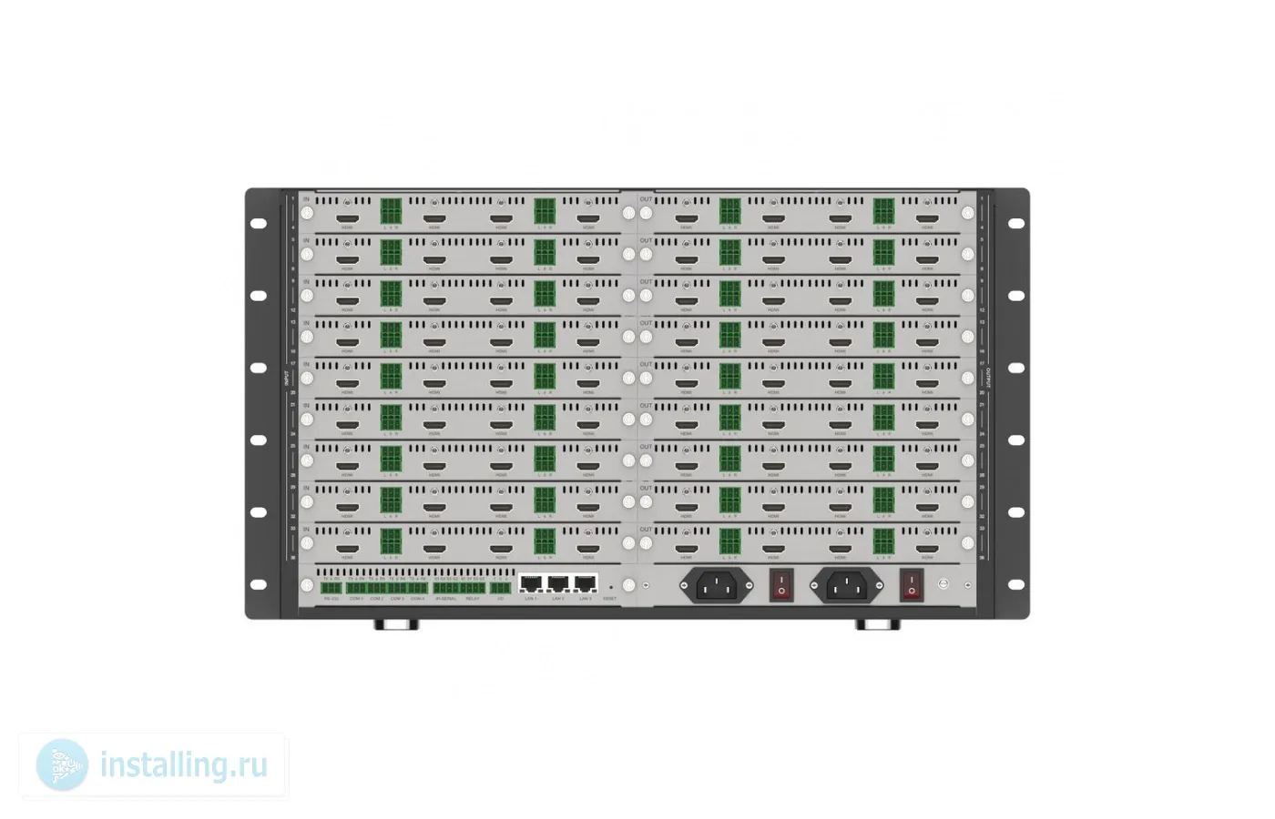 36х36 (шасси), 4K до 18Гб/с, бесподрывный, режим Видеостены, HDCP 2.2, RS232, IR, TCP/IP (GUI)