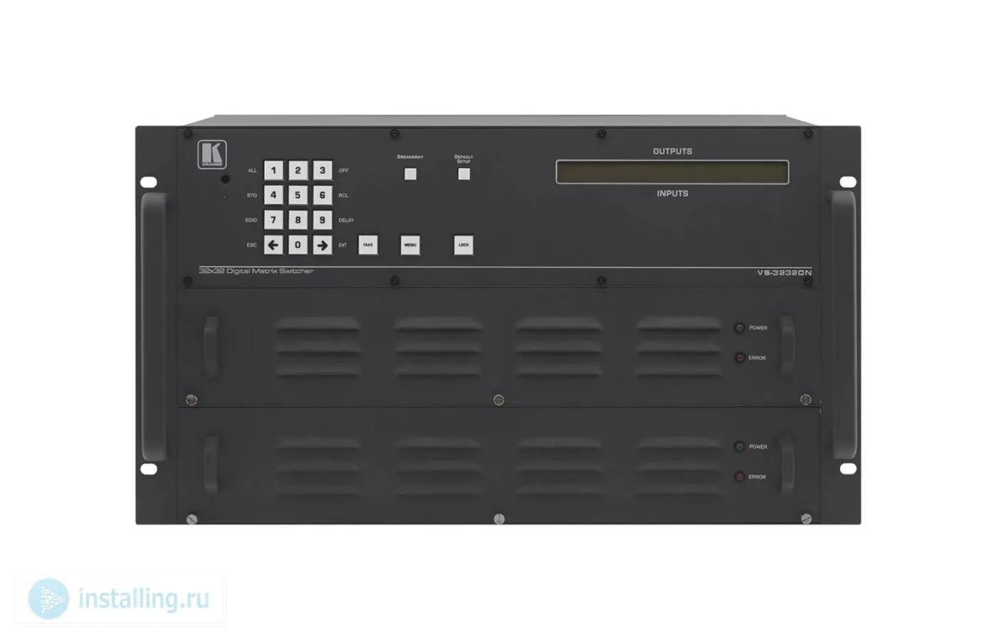 VS-3232DN-EM/STANDALONE – шасси мультиформатного матричного коммутатора с шестнадцатью слотами для установки интерфейсных модулей, позволяющее построить матричный коммутатор размерностью от 4×4 до 32×32 с шагом 4 входа/выхода. Поддерживаются разрешения сигналов до 4K60 (YUV 4:2:0). Поставляется с источником питания, встроенными модулями управления и тестирования.