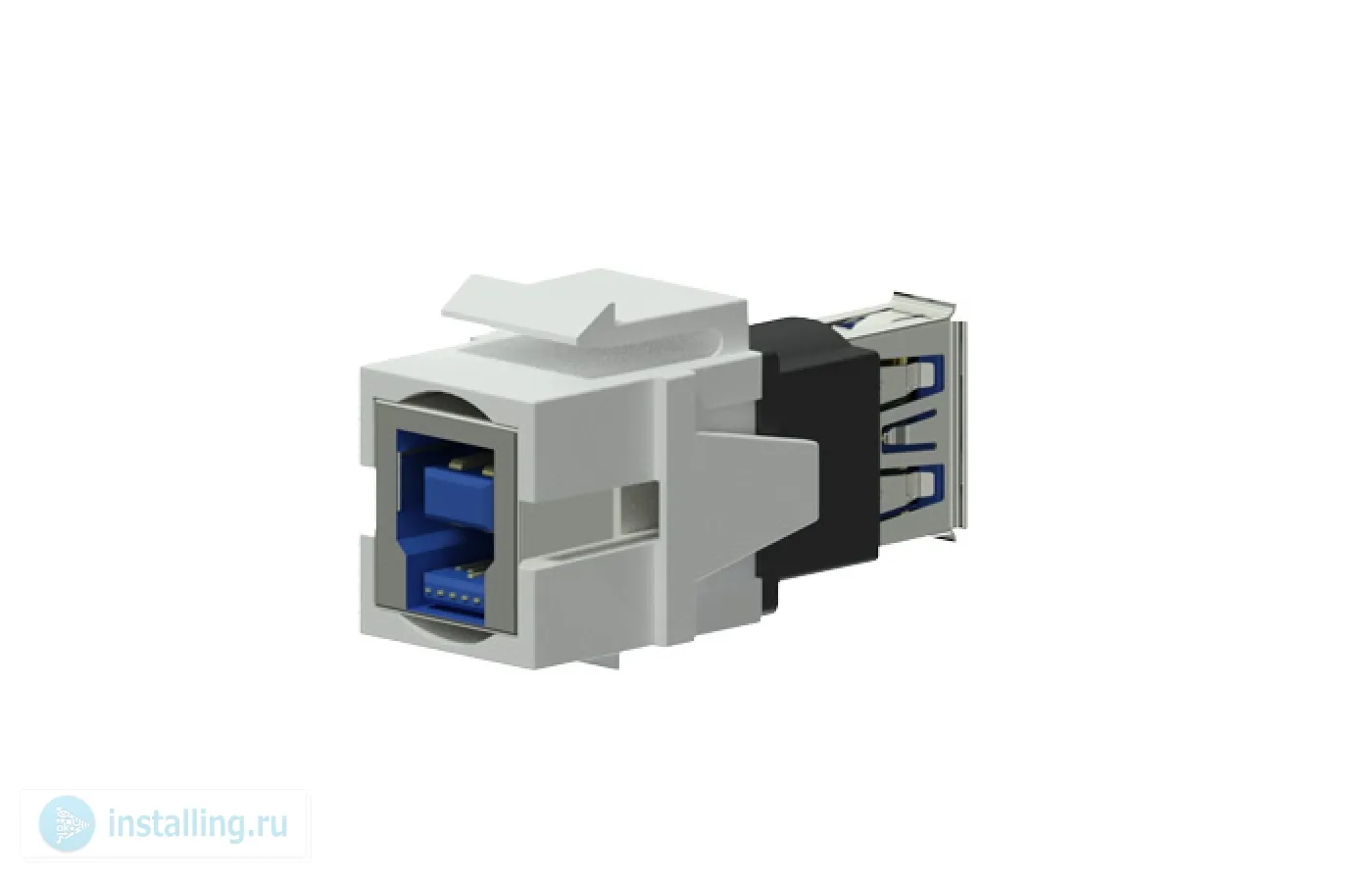 VCK630/W – вставка-переходник Keystone USB 3.0 тип 'A' (розетка) – USB 3.0 тип 'B' (розетка), используется с модулем настенной панели CP45KS2, цвет белый.