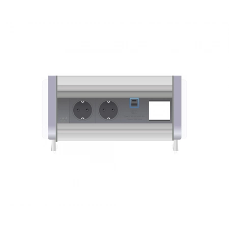 2 розетки (Schuko); 1xUSB, тип А; 1xUSB, тип C и 1 слот для установки модуля подключения IMP (приобретается отдельно). Монтаж к столу: врезной. Толщина столешницы: 10–30 мм., серая