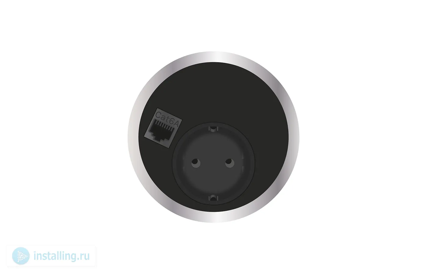 Толщина столешницы: 15–45 мм. Диаметр монтажного отверстия: 80 мм. Габаритные размеры: 96x77 мм. Разъем для кабеля питания GST18i3 (розетка). Цвет черный.