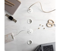Встраиваемая зарядная станция серии Powerdot с 2xUSB Круглая лицевая панель. Максимальная толщина столешницы: 26 мм. Сила тока: 2 А суммарно. Серебристый