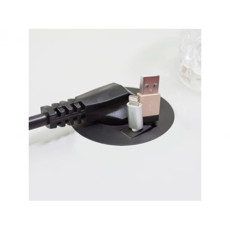 С отверстием для кабелей 10x20 мм. Максимальная толщина столешницы: 52 мм. Длина кабеля питания: 1,55 м. Цвет черный.