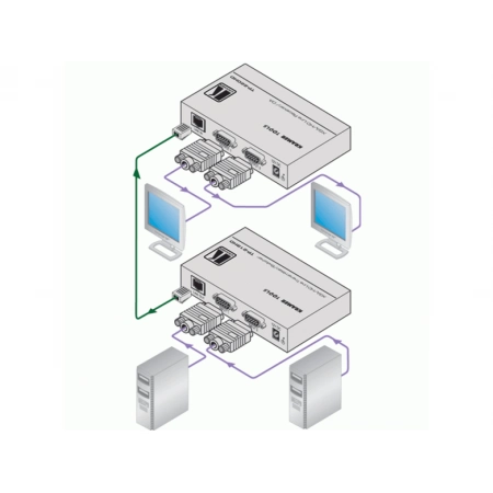- Позволяет организовать линию передачи VGA или HDTV сигналов по витой паре на расстояние до 100 метров, рекомендуется использовать совместно с Kramer TP-220HD
