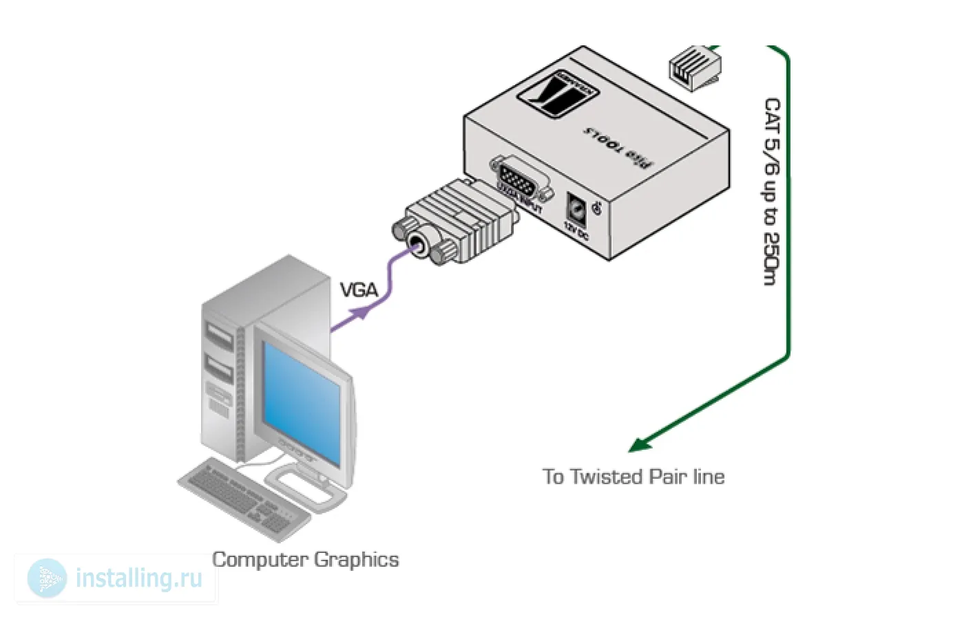 VGA сигнала в витую пару (TP) с эмулятором источника данных EDID до 250 м