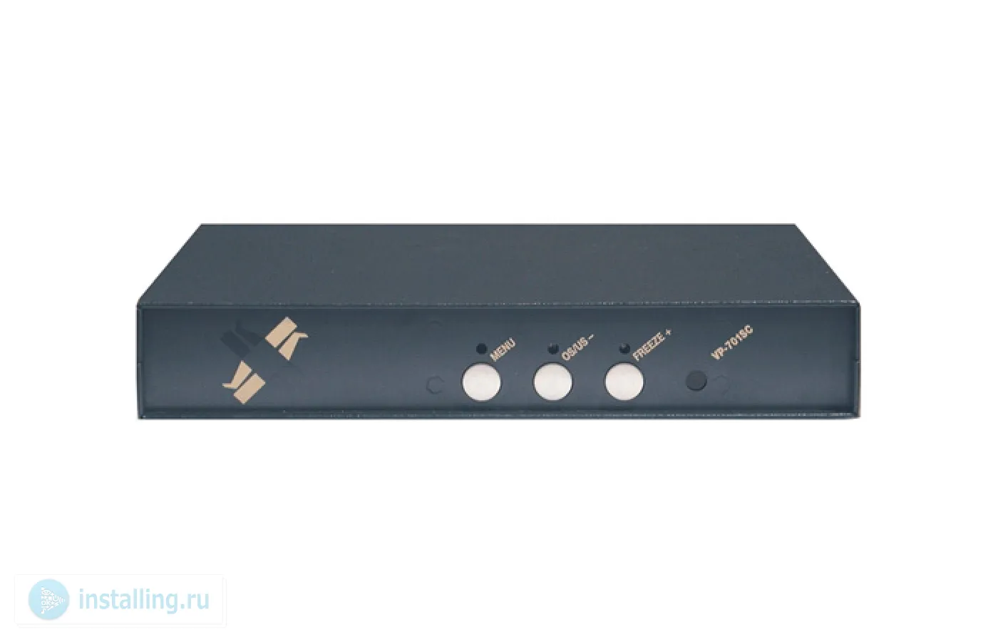 VP-701SC - преобразователь частоты развертки сигнала VGA в видео сигнал NTSC или PAL в режиме реального времени. Он оснащен проходным гнездом (разъем HD15F) для подключения компьютерного монитора, выходами композитного сигнала (разъем RCA) и сигналов S-video (разъем 4-pin). Имеется двухуровневая система подавления помех на четыре строки, а также возможность изменения размера изображения и сдвига его по горизонтали и вертикали. Преобразователь позволяет работать с любым компьютерным VGA сигналом (с горизонтальной частотой развертки 24-100 кГц и вертикальной частотой развертки до 150 Гц). Устройство производит 24-битную обработку цвета и изображения в режиме реального времени. Как и все преобразователи частоты развертки Kramer, VP-701SC имеет функции автоматической конвертации и определения входного сигнала, а также функцию автоматической установки AutoTrak. Кнопка автоматической установки позволяет задавать разрешение выходного сигнала, перемещать и центрировать его на экране видео монитора или проектора. На передней панели расположен светодиодный индикатор. Устройство выполнено в прочном металлическом корпусе и может размещаться на рабочем столе в горизонтальном или вертикальном положении.