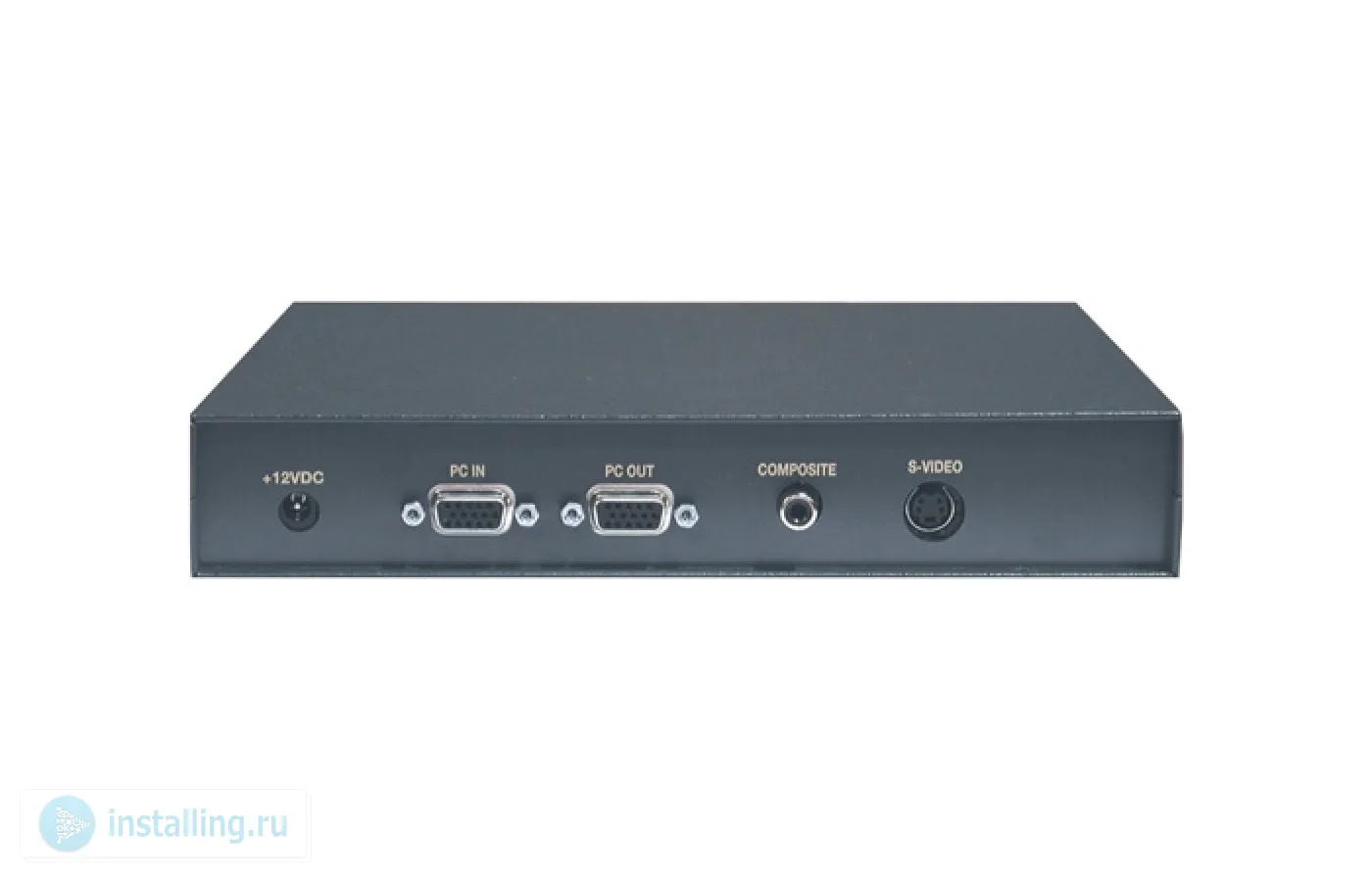 VGA в композитный видео сигнал и сигнал S-video формата NTSC или PAL. Оснащен проходным гнездом. Имеется двухуровневая система подавления помех на четыре строки