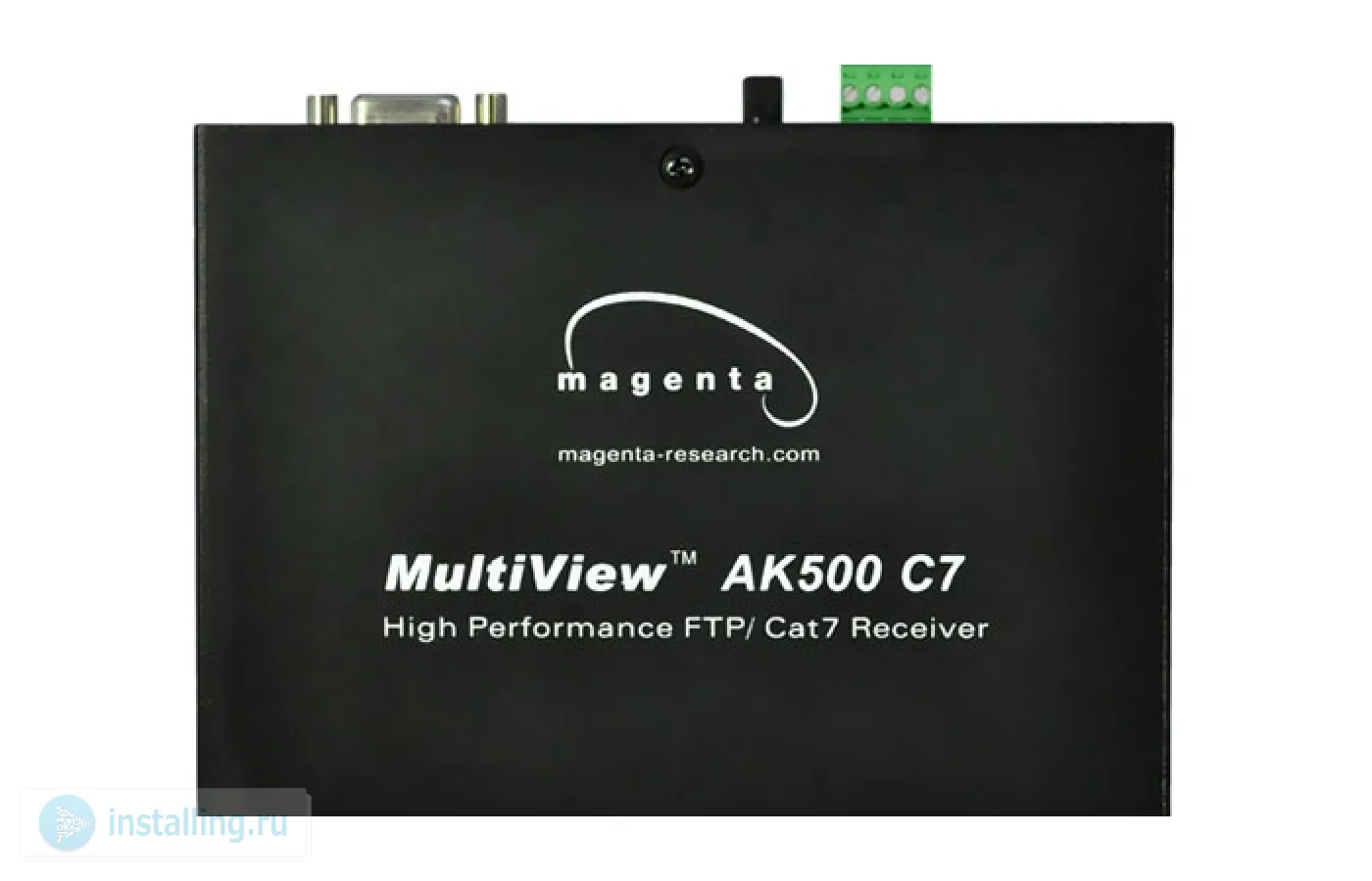 AK500-C7 серии MultiView для сигналов VGA / RGBHV / RGB / компонентного / композитного / S-video и аналогового небалансного псевдостереофонического аудиосигнала, передаваемых по кабелю неэкранированной витой пары 7-й категории длиной до 150 м.