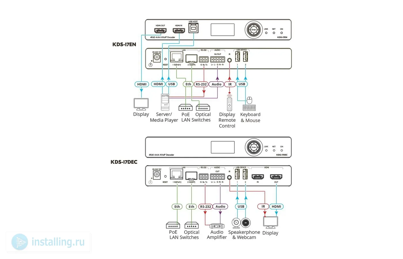 Ethernet видео 4K60 (4:4:4) с HDCP 1.4/2.2, аудио, RS-232, ИК