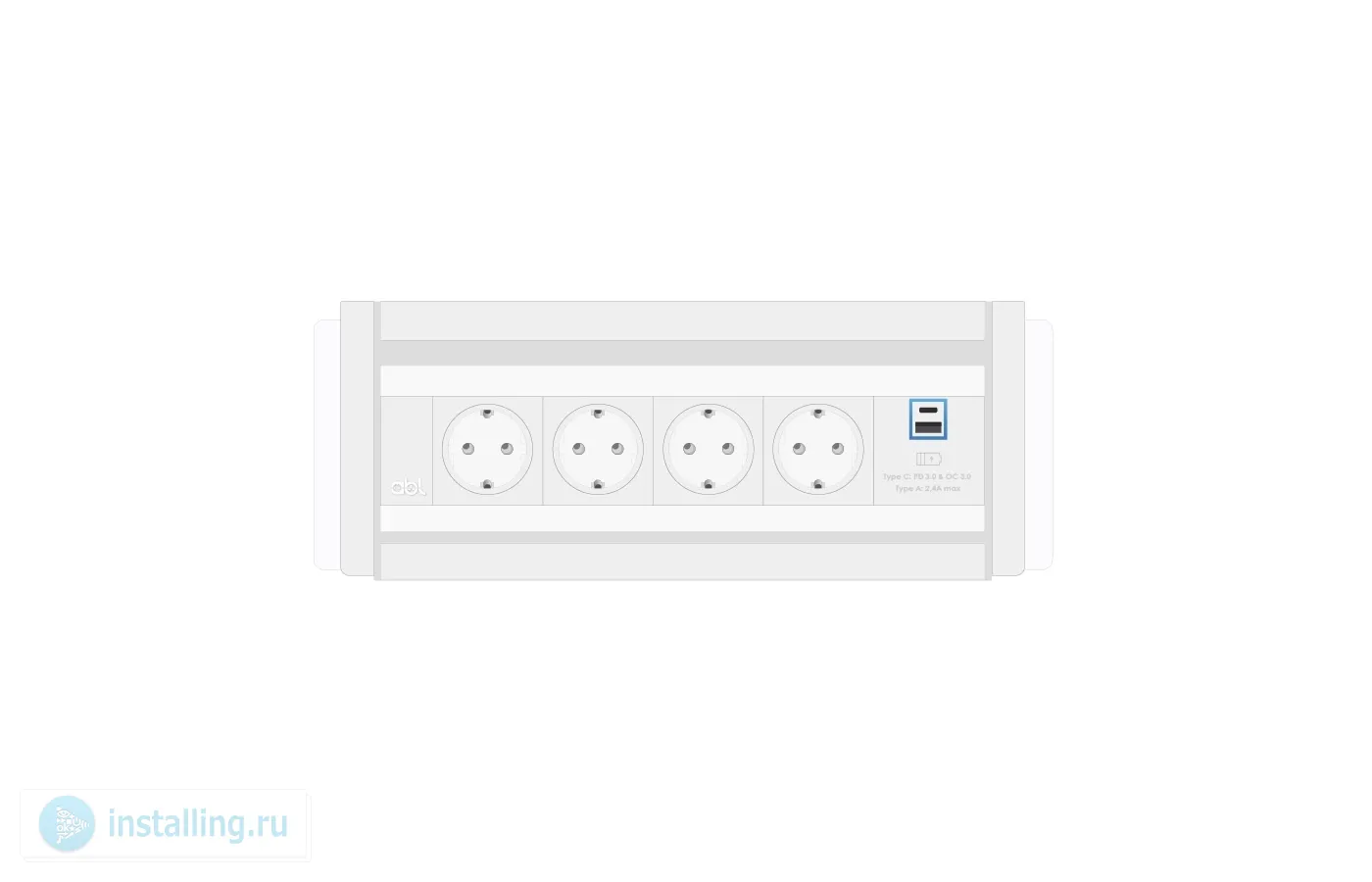 4 розетки (Schuko); 1xUSB, тип А; 1xUSB, тип C. Монтаж к столу: врезной. Толщина столешницы: 10–30 мм. Габаритные размеры (ШxГxВ): 308x150x143 мм. Разъем для кабеля питания GST18i3 (розетка). Цвет белый.