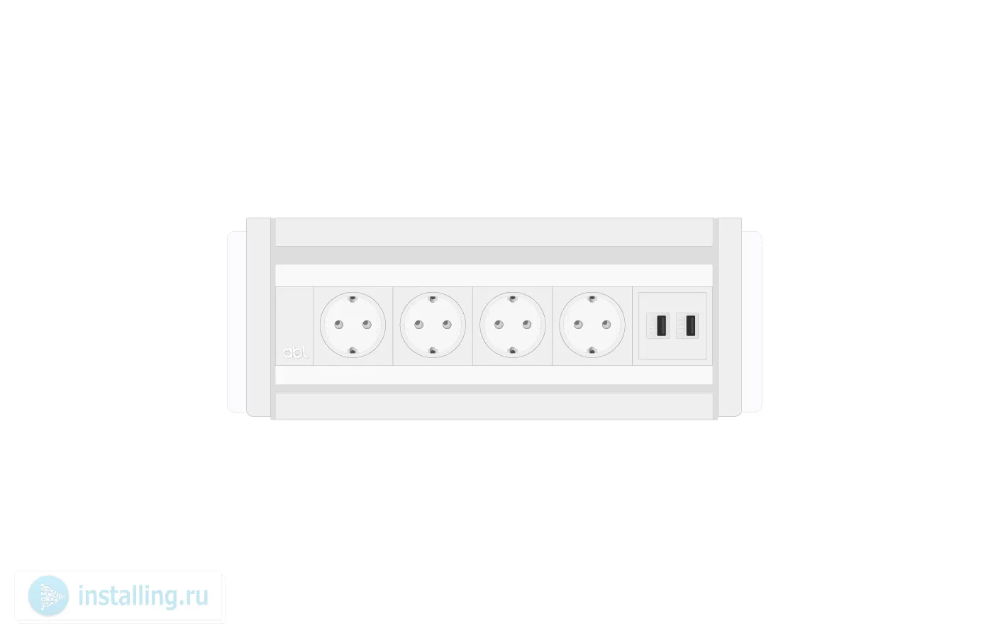 4 розетки (Schuko) и 2xUSB, тип А (2,4 А). Монтаж к столу: врезной. Толщина столешницы: 10–30 мм. Габаритные размеры (ШxГxВ): 308x150x143 мм. Разъем для кабеля питания GST18i3 (розетка). Цвет белый.