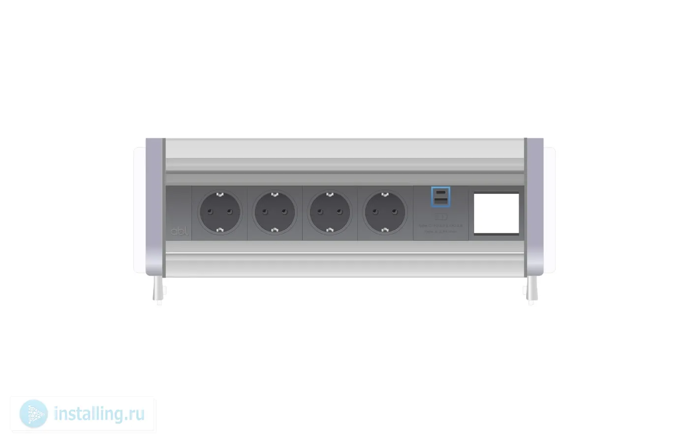 4 розетки (Schuko); 1xUSB, тип А; 1xUSB, тип C и 1 слот для установки модуля подключения IMP (приобретается отдельно). Монтаж к столу: врезной. Толщина столешницы: 10–30 мм.