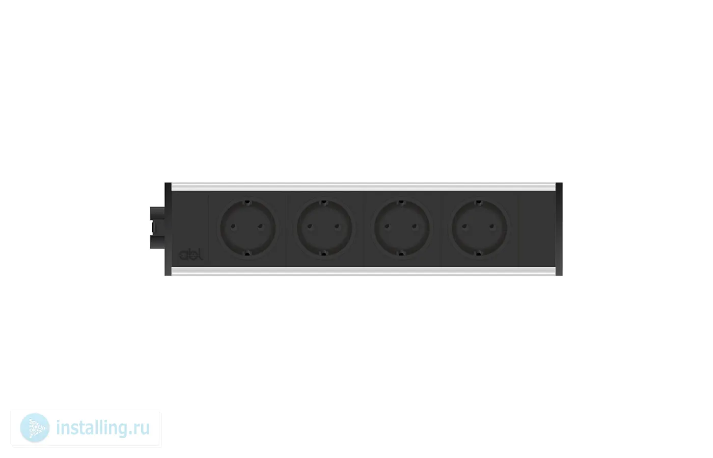 4 розетки (Schuko). Разъем GST18i3 для подключения кабеля питания или последовательного подключения совместимых устройств. Габаритные размеры (ШxГxВ): 276x63x46 мм. Цвет черный с серебристым.