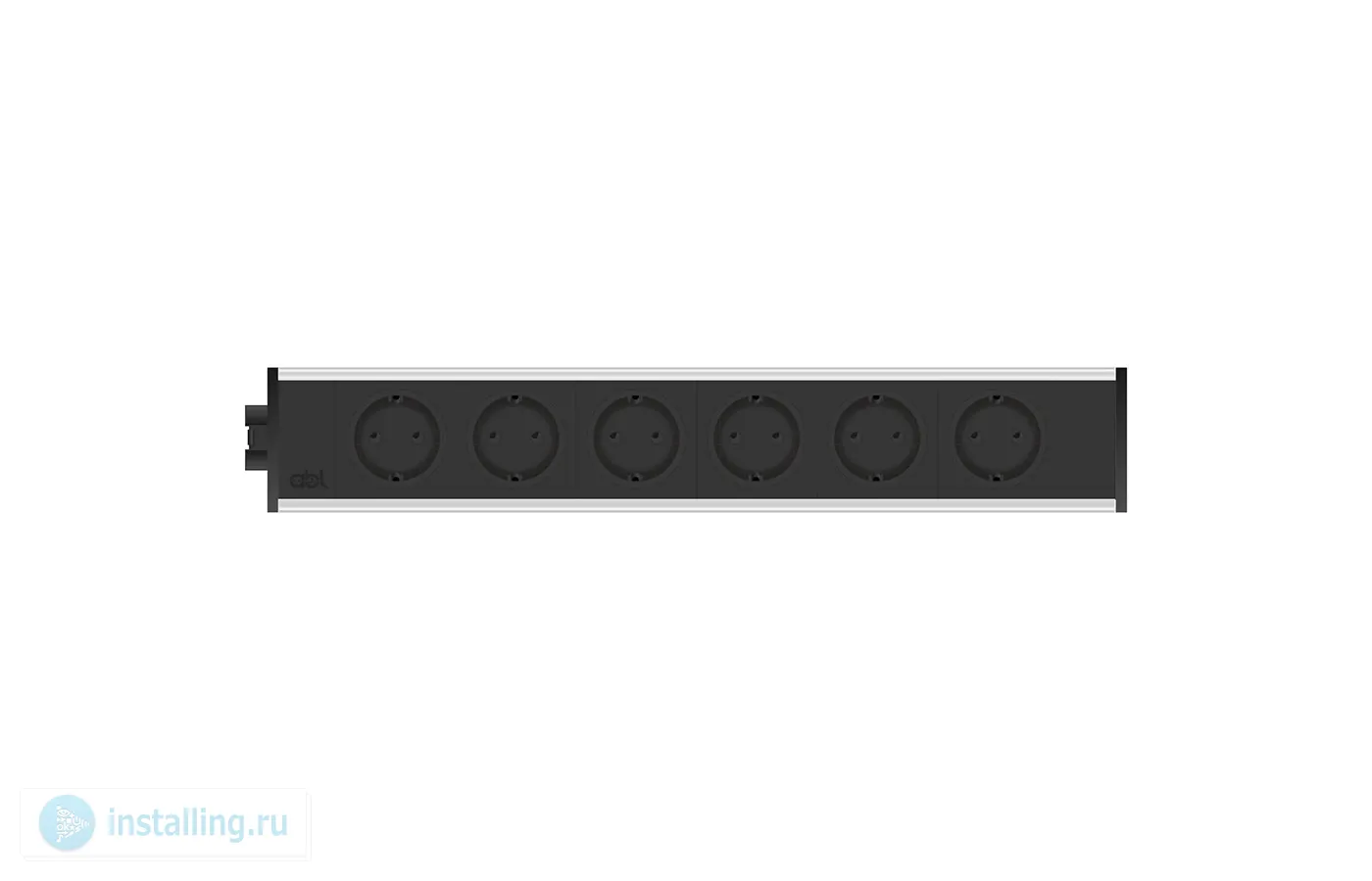 Розеточная станция серии Link: 6 розеток (Schuko). Разъем GST18i3 для подключения кабеля питания или последовательного подключения совместимых устройств. Габаритные размеры (ШxГxВ): 383x63x46 мм. Цвет черный с серебристым.