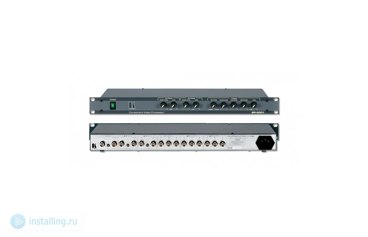 SP-3001 - профессиональный студийный процессор, предназначенный для преобразования компонентных видеосигналов Y, R-Y и B-Y. Имеет проходное гнездо. Регулировка уровня черного и уровня выходного сигнала осуществляется для каждого канала раздельно, а контроль четкости и контраста производится с Y-канала. SP-3001 может также использоваться в качестве усилителя-распределителя с тремя группами компонентных видеовыходов (Y, R-Y и B-Y). Процессор имеет закрытые парные входы и выходы, что позволяет получать видеосигнал высокого качества. Экранный делитель дает возможность отслеживать на одном мониторе параметры сигнала до и после обработки. SP-3001 выполнен в надежном и прочном корпусе и может устанавливаться в стандартную 19 стойку (занимаемая высота - 1 Unit).