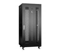 Шкаф напольный 19-дюймовый, 47U Шкаф монтажный телекоммуникационный 19 напольный для распределительного и серверного оборудования 47U 600x600x2277mm ШхГхВпередняя стеклянная и задняя сплошная металлическая двери, ручка с замком, цвет черный RAL 9004