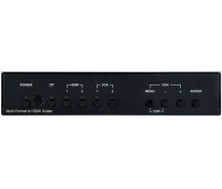 Масштабатор, автоматический коммутатор сигналов HDMI c HDCP 1.4 (2.2), VGA с эмбеддированием аудио Входы 1 – HDMI, тип A (розетка)1 – VGA, разъем D-Sub HD15 (розетка)1 – аудиостерео, разъем miniJack 3,5 мм (розетка), выходы 1 – HDMI, тип A (розетка), порты 1 – RS-232, клеммный блок1 – USB (сервисный), тип А (розетка)